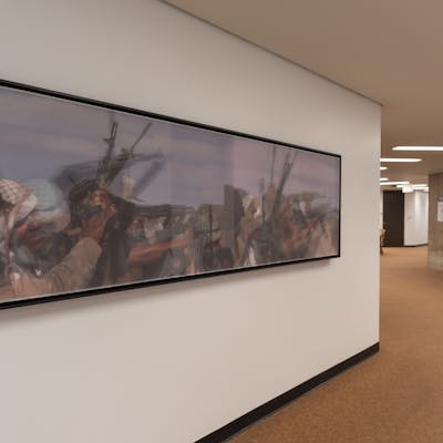 Bradley McCallum uses Foley’s video footage from the civil wars in Libya and Syria to create oil paintings that he further activates with augmented reality, allowing viewers to experience Foley’s presence, and the footage that inspired the paintings.