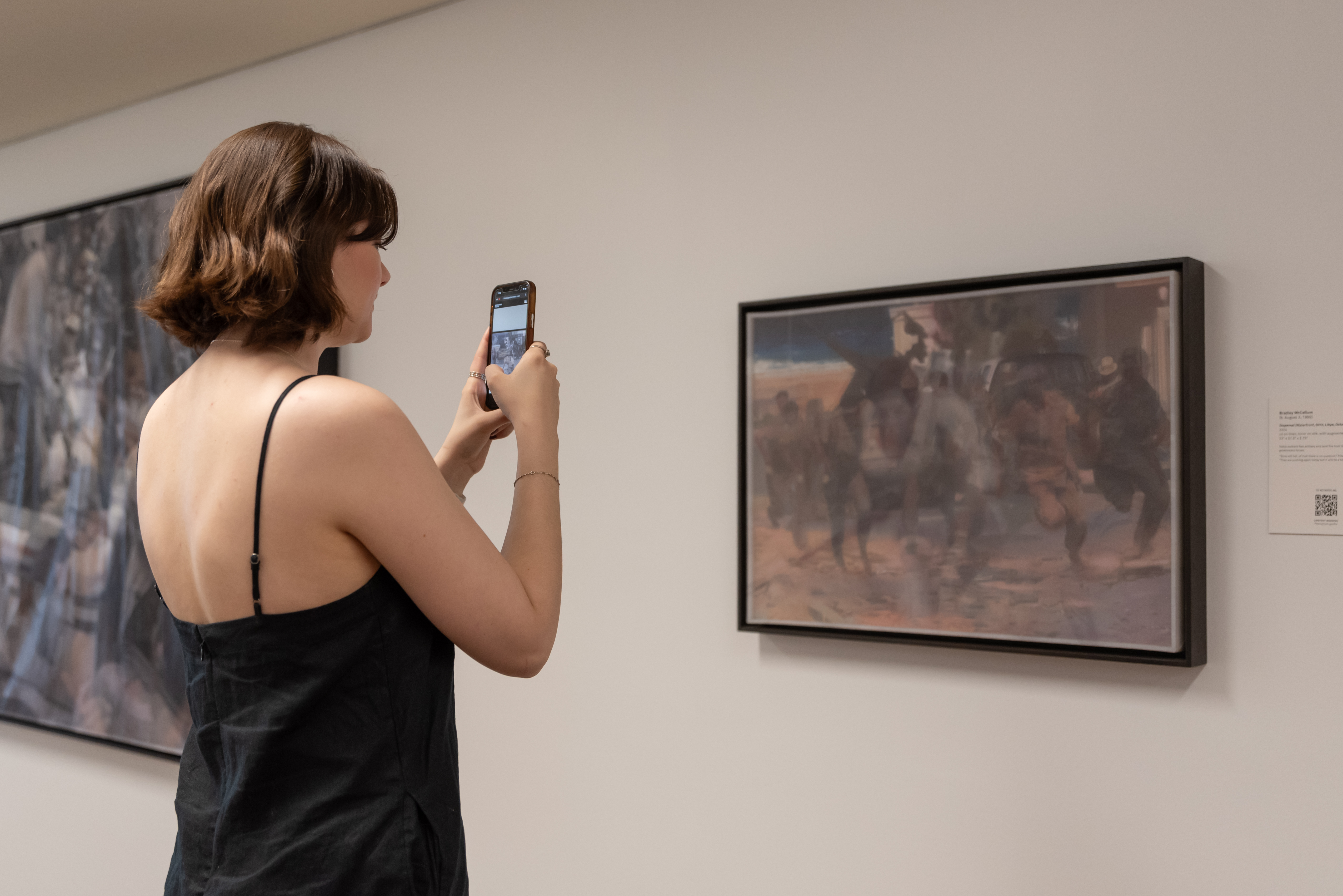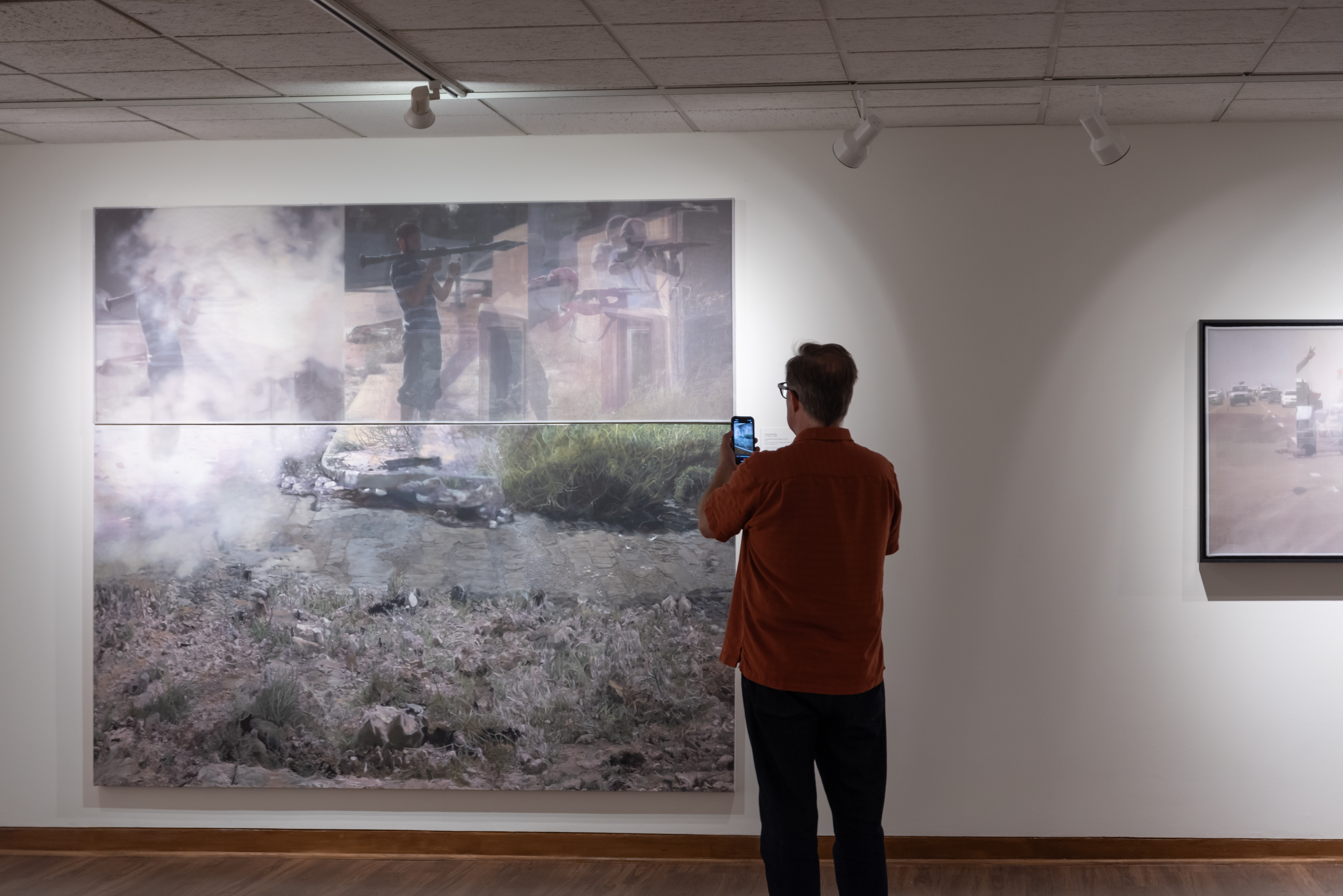 Bradley McCallum uses Foley’s video footage from the civil wars in Libya and Syria to create oil paintings that he further activates with augmented reality, allowing viewers to experience Foley’s presence, and the footage that inspired the paintings.
