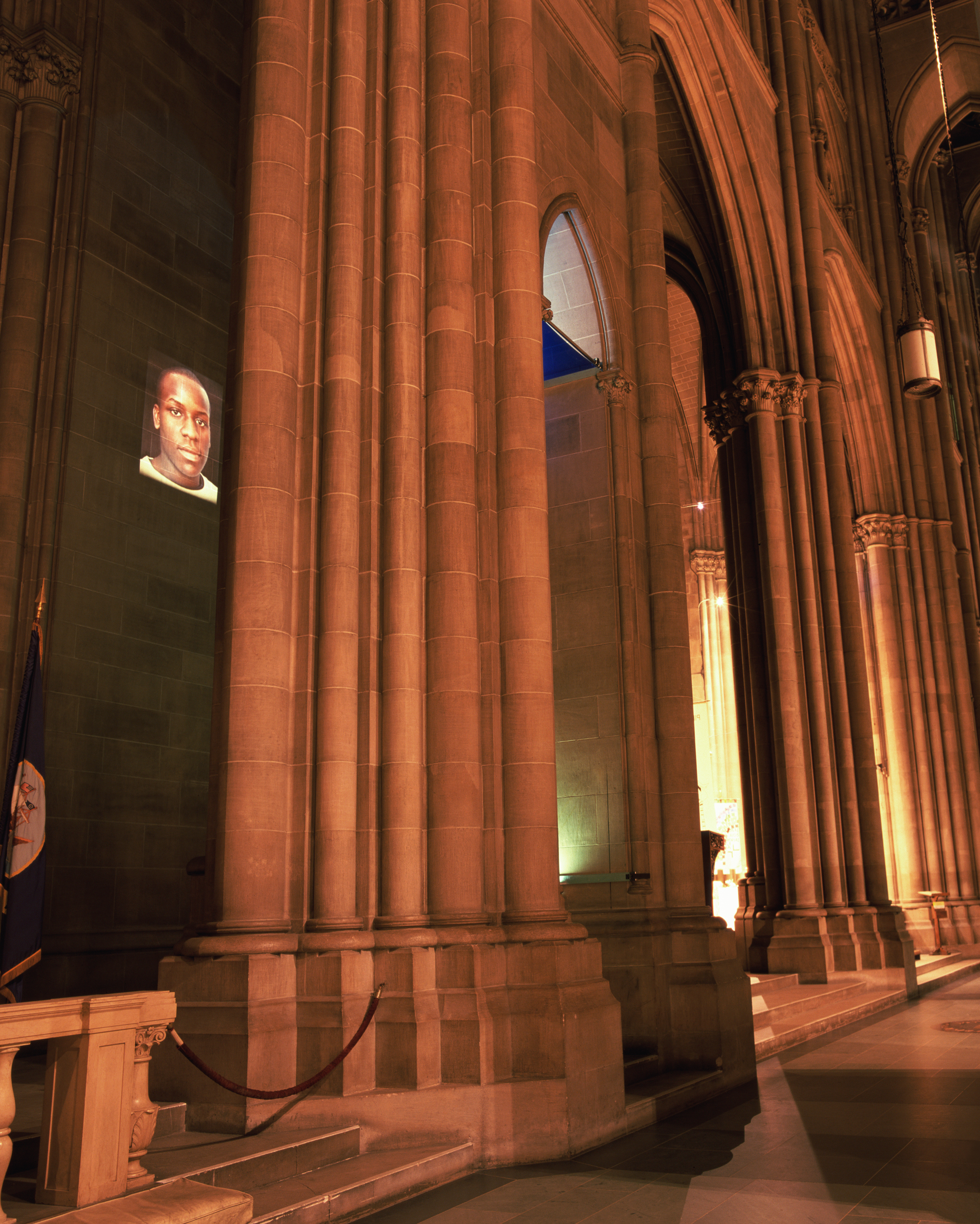 Throughout the central nave of the Cathedral Church of St. John the Divine, NY, the oral histories of witnesses, survivors of police violence, victims and their family members were accompanied by video projections, photographic images and text to create intimate listening spaces and to examine the depths of an act of public violence.