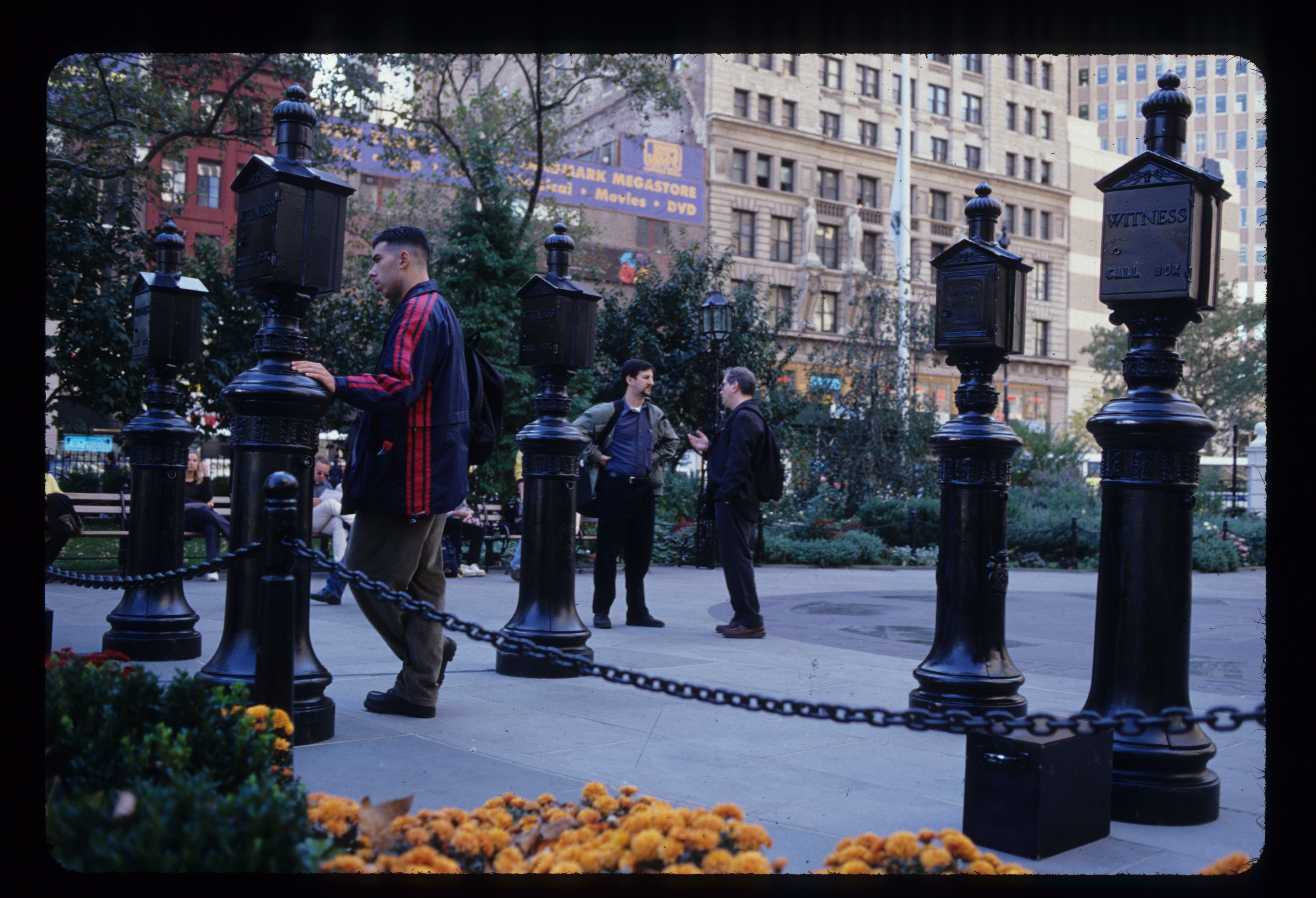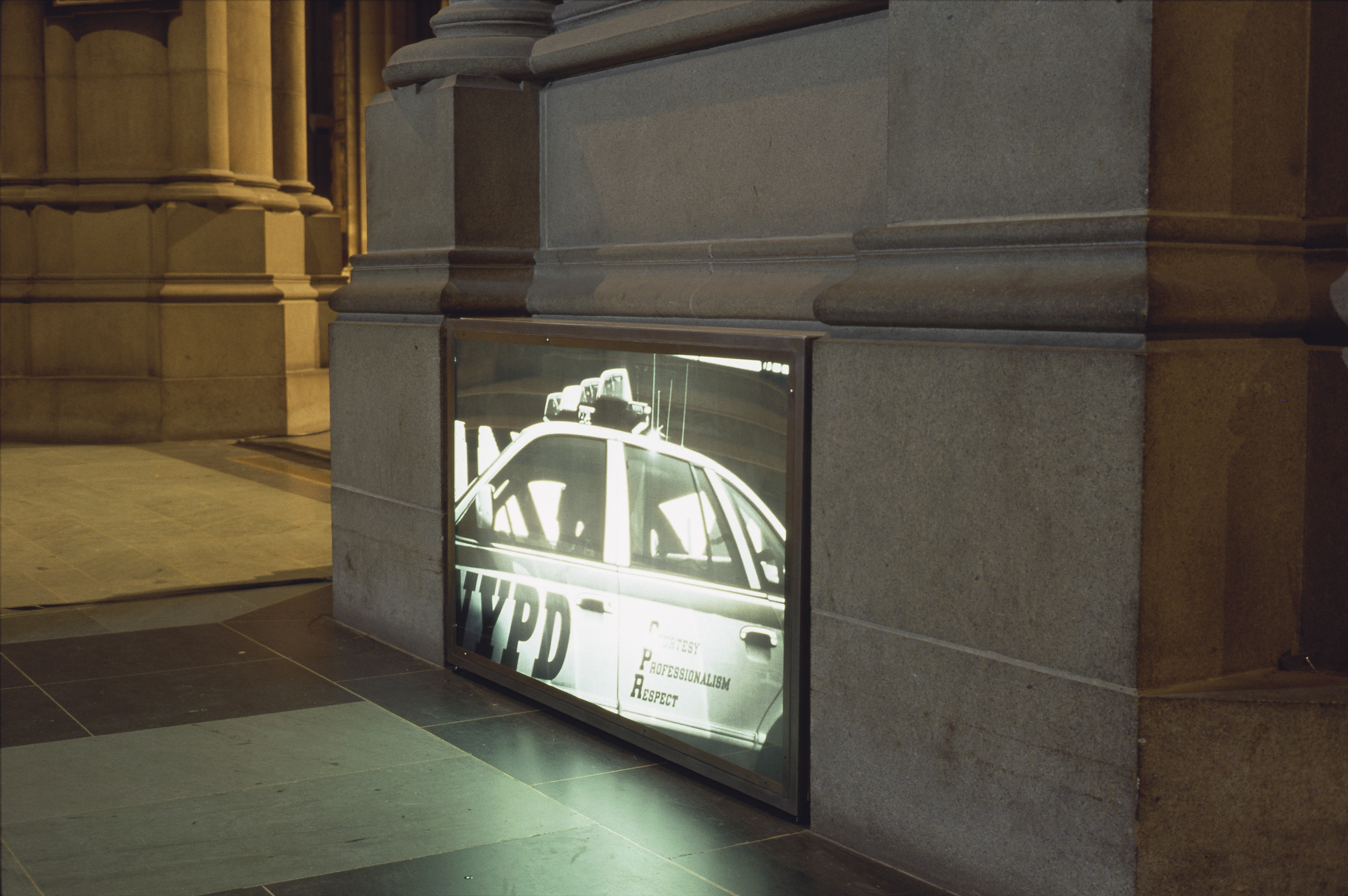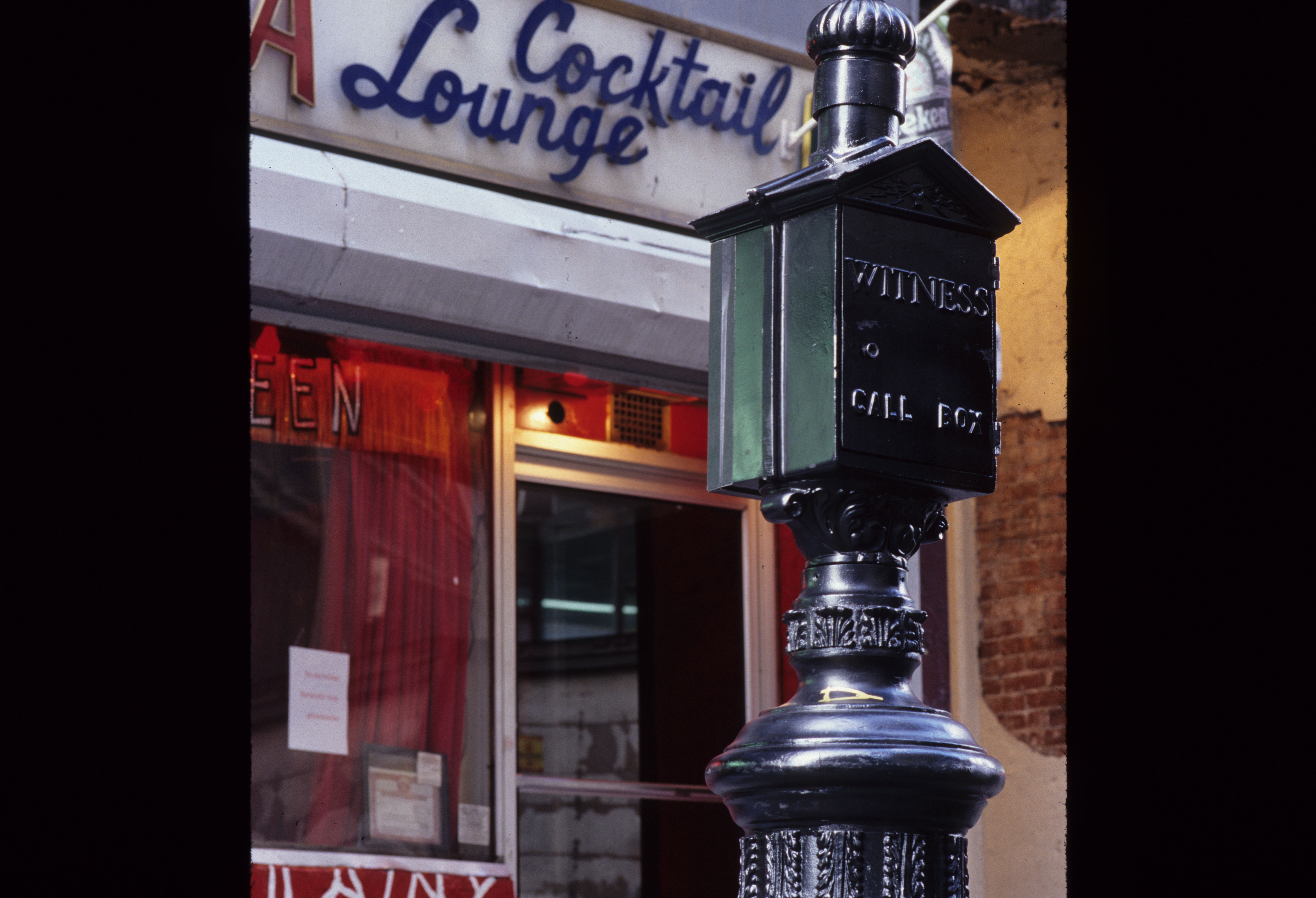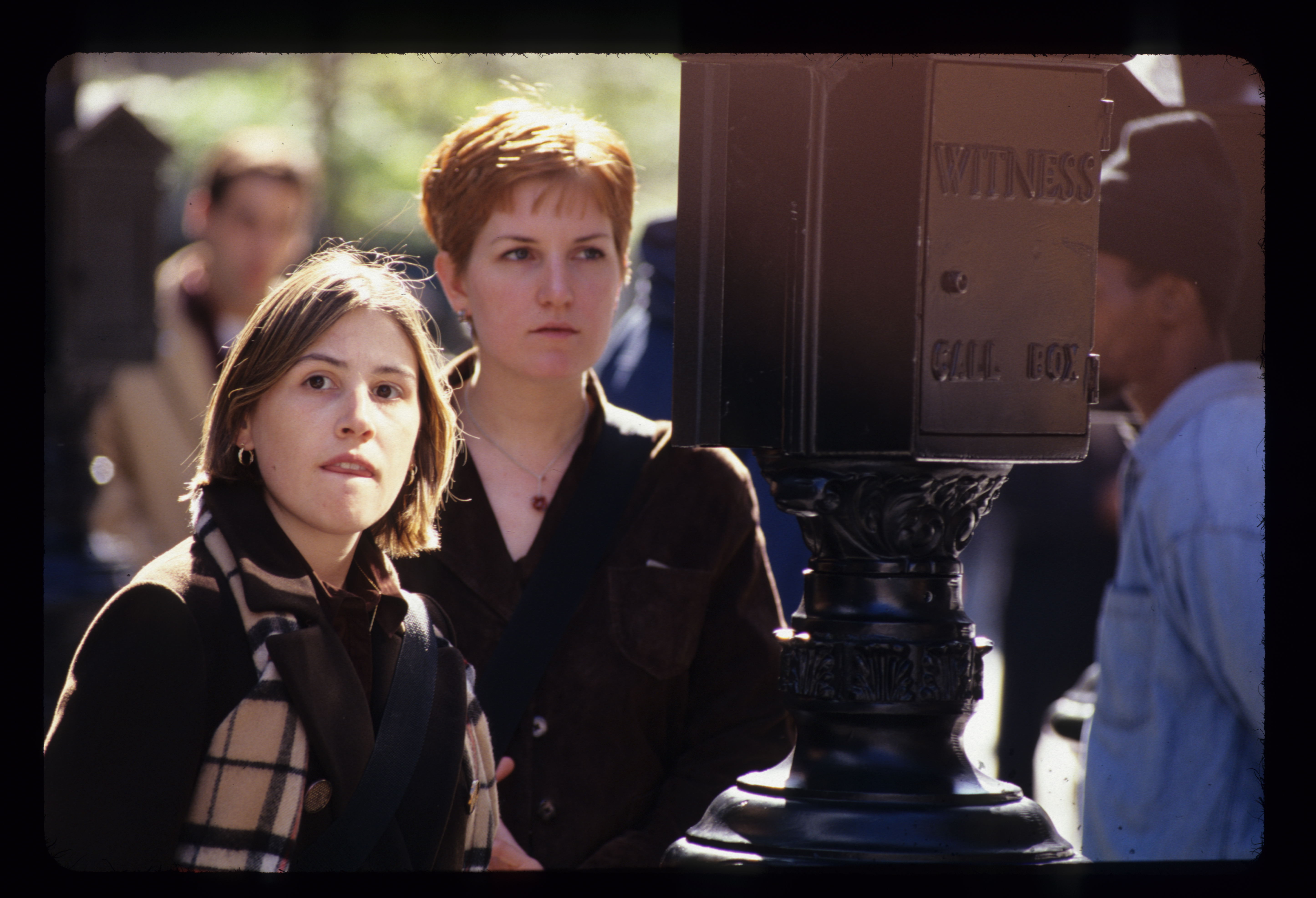 Each call box contained illuminated transparent imageries of street locations or places, such as landmarks of police vehicles, where violent incidents occurred. They also emitted audio testimony from victims, witnesses, and police officers, the interviews were done by the artists. Passersby were drawn to the call boxes by the image and the sound emanating from them, yet having had to listen carefully to the audios to understand the context. This invited rare kinds of closeness and intimacy with personal public reflections on violence and issues of civic responsibility in New York City.